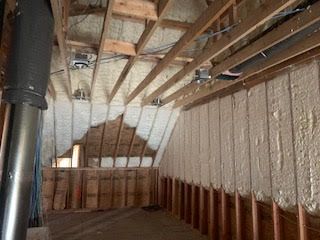 Closed cell is expensive and not in the budget for some jobs. But on a residential building that is wood sheeted, Open Cell Foam is a great choice! By using open cell foam you are guaranteed to be twice as efficient as fiberglass, but save money over using closed cell foam. Most new construction homes we spray use OC and they work very well in the temperature swings we have in Kansas City. with an R-value of 13 when sprayed in a 2x4 wall it easily meets code also. Most people think of open cell foam because we have all seen the videos of how much it expands when being applied, this extreme expansion is what makes it such a great insulator also. By expanding 300 times its sprayed thickness this foam quickly swells into any cracks or voids to insulate the surface its sprayed to.